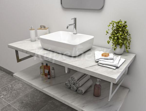 Výroba a predaj umývadlových políc je možný aj na mieru. Ich základ tvorí drevotriesková doska,ktorá je impregnovaná melamínovou živicou - vodeodolná a vhodnú do kúpeľne. K dispozícii sú v rôznych povrchových úpravách,vrátane lesklej, matnej a nádhernými štruktúrami dreva. Kúpeľňové police – dosky pod umývadlá sú vhodné na použitie vo vlhkom prostredí a pri kontakte s vodou.