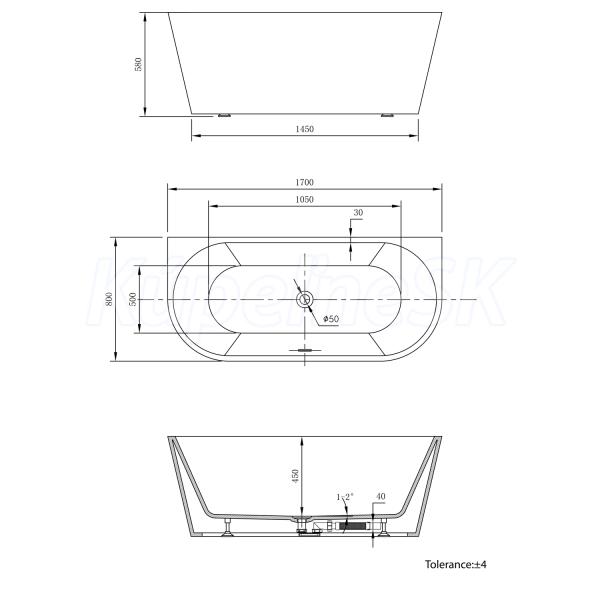 Aqualine TAJO voľne stojaca vaňa 170x80 cm, biela