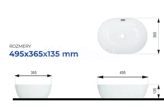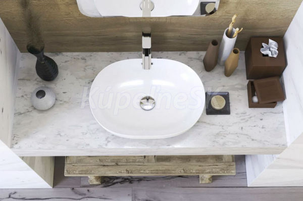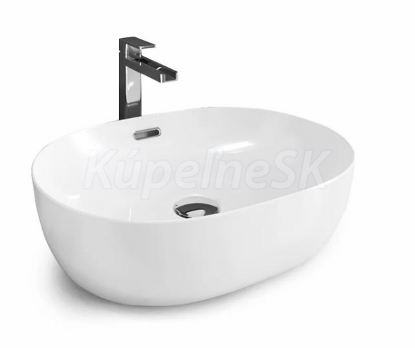 Oválne keramické umývadlo bez otvoru pre batériu s prepadom.