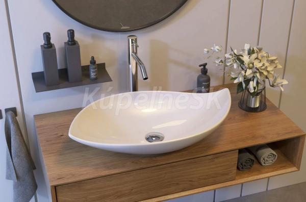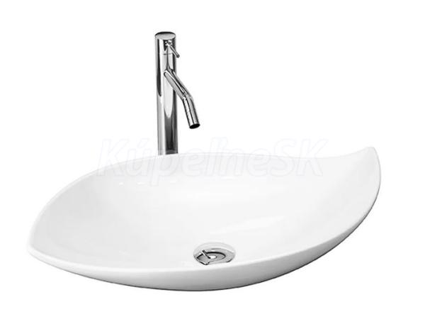 Atypické keramické umývadlo bez otvoru pre batériu, bez prepadu.