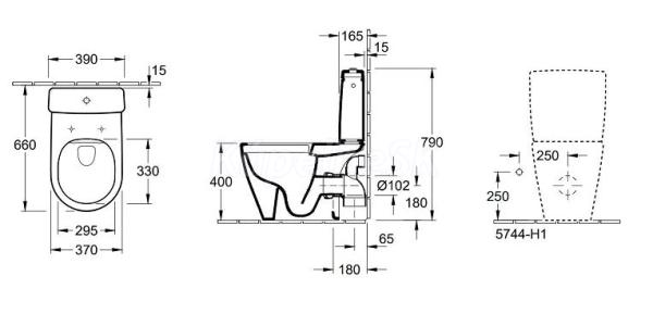 Villeroy&Boch Avento WC kombi misa stojaca 37x64cm,Rimless,hlboké splach,vodor.odpad,Biela
