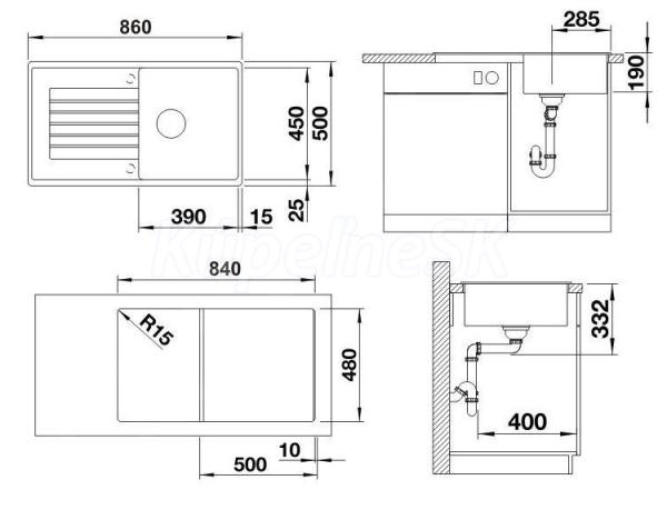 Celkový rozmer drezu: 860 x 500 x 190 mm
