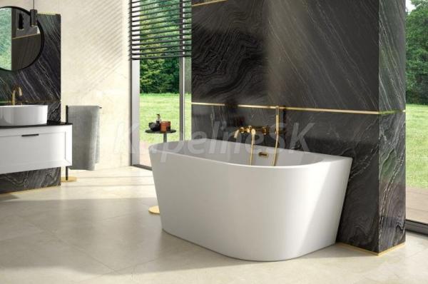 Asymetrická voľne stojaca vaňa VICE NEW , ktorá je určená na inštaláciu k priebežnému múru v troch praktických rozmeroch , robustná konštrukcia a jemný moderný dizajn . Vaňa je vyrobená z kvalitného sanitárneho akrylátu . Vďaka tomu má praktickú hmotnosť a je dostatočne pevná . Vaňu je možné umiestniť k stene. Výhodou je jednoduchá inštalácia, nie je nutné podmurovanie ani obklad vane . Súčasťou vane je aj odtokový systém click-clack so štrbinovým prepadom vo farbe chróm . Ďalej ponúkame tieto sifóny za príplatok v ďalších 4 farbách (zlatá, čierna, biela a grafitová ).