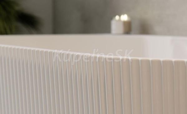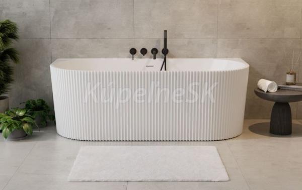 Asymetrická voľne stojaca vaňa LEAY s veľmi originálnym vrúbkovaným čelným panelom , ktorá je určená pre inštaláciu k priebežnému múru v dvoch praktických rozmeroch , robustná konštrukcia a jemný moderný dizajn. Vaňa je vyrobená z kvalitného sanitárneho akrylátu. Vďaka tomu má praktickú hmotnosť a je dostatočne pevná. Výhodou je jednoduchá inštalácia , nie je nutné podmurovanie ani obklad vane. Súčasťou vane je aj odtokový systém click-clack so štrbinovým prepadom vo farbe chróm . Ďalej ponúkame tieto sifóny za príplatok v ďalších 4 farbách ( zlatá, čierna, biela a grafitová ).