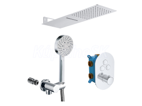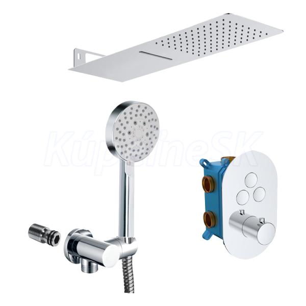 Špeciálne navrhnutá kolekcia termostatických batérií. Ich unikátnosť spočíva predovšetkým v možnosti nastavenia si presnej teploty výstupnej vody, ktorá sa nemení ani pri prerušení sprchovania. Tým šetrí nielen vodu, ale aj energiu a náklady na ohrev. Teplotu vody je možné nastaviť bez akýchkoľvek prekážok až do 38 oC. Pre nastavenie vyššej teploty je nutné stlačiť poistku, ktorá nedovolí deťom zvýšiť teplotu vody a chráni ich tak pred obarením. Výhodou je aj nízka hlučnosť a kartuše s dlhou životnosťou. V batérii je nastavený maximálny prietok vody, bez možnosti ďalšej regulácie. Trojcestná varianta (s prepínačom 3 polohy) je určená do sprchových kútov s ručnou sprchou, hlavovou sprchou a ďalším zdrojom tečúcej vody, napr. vodopádom. - keramická kartuša 35 mm - 10 rokov záruka na batériu - servis vodovodných batérií zaistený v rámci SR a ČR Súčasťou setu je tanierová sprcha s vodopádom 500x200 mm, držiak sprchy, päťpolohová sprcha, nerezová dvouzámková hadica 150 cm, stenový vývod.