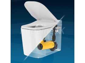 - Nepotrebuje podomietkovú nádržku ani žiadnu inú inštaláciu v stene - všetko je vo vnútri WC. Pripojíte rovnako ľahko ako kombi WC, stačí roháčik vedľa WC alebo na presne stanovenom mieste za WC (pozri ďalej stavebnú pripravenosť).