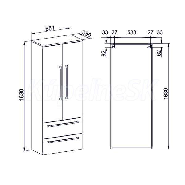 >>  Kúpeľňový nábytok  >>  Bočné-Vysoké skrinky  >>  Mereo Bino, kúpeľňová skrinka vysoká, dvojitá 163 cm, dub Arlington CN629