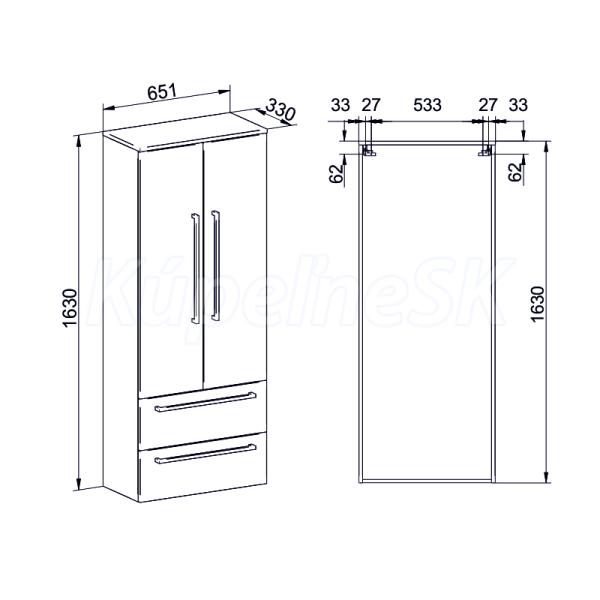 >>  Kúpeľňový nábytok  >>  Bočné-Vysoké skrinky  >>  Mereo Bino, kúpeľňová skrinka vysoká, dvojitá, 163 cm, dub Sand Barbera CN639