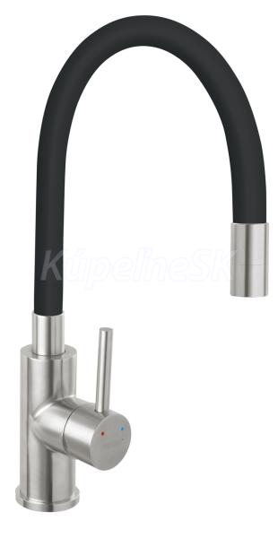kategória distribúcie Novaservis: Vodovodní baterie | Dřezové baterie stojánkové. Kvalitní a odolná keramická kartuše 35 mm . s prodlouženou zárukou 5 let. Prvotriedny nerezový povrch. Stojánková dřezová baterie s čiernym FLEXI ramenem. Součástí baterie jsou přívodní hadičky.