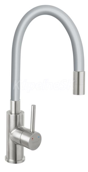 kategória distribúcie Novaservis: Vodovodní baterie | Dřezové baterie stojánkové. Kvalitní a odolná keramická kartuše 35 mm . s prodlouženou zárukou 5 let. Prvotriedny nerezový povrch. Stojánková dřezová baterie s šedým FLEXI ramenem. Součástí baterie jsou přívodní hadičky.