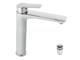 kategória distribúcie Novaservis: Vodovodní baterie | Umyvadlové baterie stojánkové. Kvalitná a odolná keramická kartuš KEROX 35 mm . s predĺženou zárukou  7 rokov. . Prvotriedne chrómové prevedenie. COMFORT 200 mm - Umývadlová batéria s výpusťou click-clack s výškou 266 mm a dĺžkou výtokového ramienka 163 mm. Úsporný aerátor s prietokom iba . 6 l/min.. . Súčasťou batérie sú prívodové hadičky.