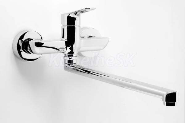 kategória distribúcie Novaservis: Vodovodní baterie | Dřezové umyvadlové baterie nástěnné. Kvalitná a odolná keramická kartuš KEROX 35 mm . s predĺženou zárukou  7 rokov. Prvotriedne chrómové prevedenie. Nástenná umývadlová/drezová batéria s rozstupom 150 mm s plochým ramenom 350 mm. Úsporný aerátor s prietokom iba . 6 l/min..