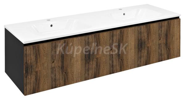 Sapho LOREA skrinka s dvojumývadlom 161x46x51,5cm (80a80cm), dub collingwood/čierna matná