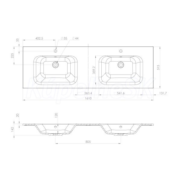 ZnačkaSAPHO SériaLOREA Rozmer161x46x51,5 cm Šírka1610. mm Výška460. mm Hĺbka515. mm Farba