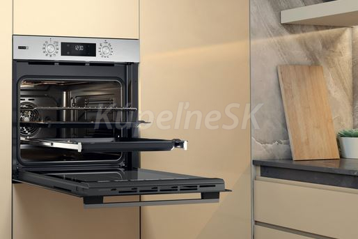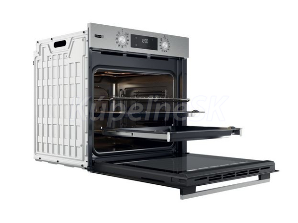 Multifunkčná teplovzdušná rúra, čierno-biely grafický displej, dvojité sklo dverí, ovládanie push gombíkmi, 10 základných funkcií + Auto programy, Konvekčný ohrev, Horúci vzduch, Gril, Turbo gril, Maxi pečenie, Pizza, Chlieb, Kysnutie, Hydroclean – jednoduché čistenie vnútorného priestoru a skla dverí, Cook3, prevedenie: nerez, čierne sklo dverí, príslušenstvo: teleskopické výsuvy, 1x rošt, 2x plech na pečenie