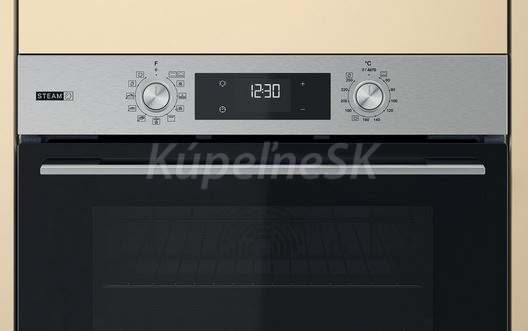 ovládanie zapustenými otočnými gombíkmi, 2-ité sklo dverí; teplovzdušná, funkcia Steam+ (pečenie s parou), Kysnutie, Pizza, auto funkcie Chlieb / Múčniky; SmartClean (čistenie parou); SoftClosing (pomalé dovieranie dvierok)
