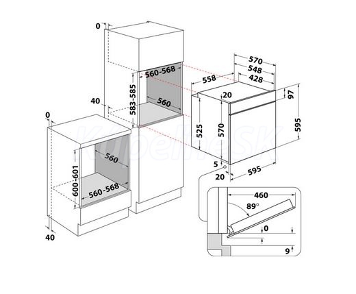 ovládanie zapustenými otočnými gombíkmi, 2-ité sklo dverí; teplovzdušná, Kysnutie, Pizza, auto funkcie Chlieb / Múčniky; SmartClean (čistenie parou)