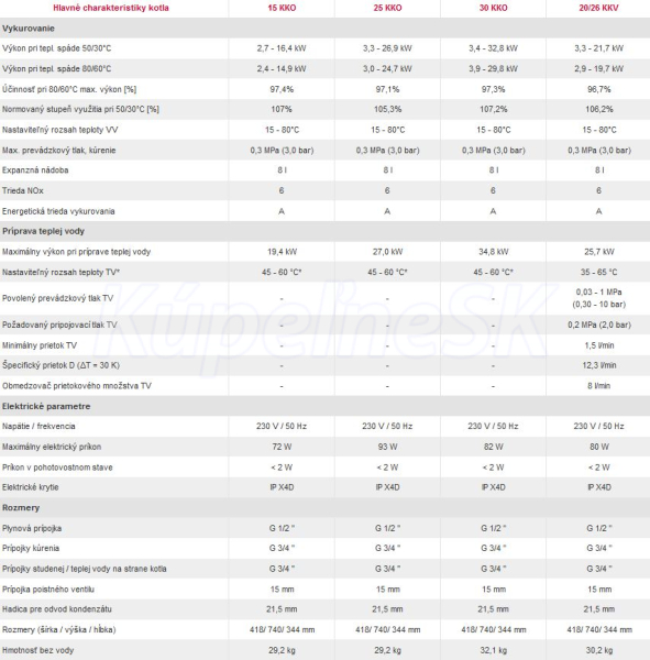 Rozsah vykurovacieho výkonu: 3,3 - 26,9 kW (pri tepl. spáde 50/30°C)