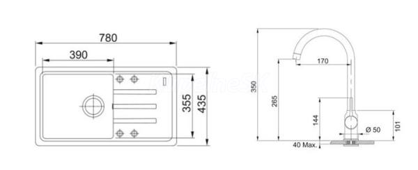 FRANKE SETG267SA fragranit. drez 780x435mm BSG 611-78/39 Sahara+batéria FP 9000.031 Chróm