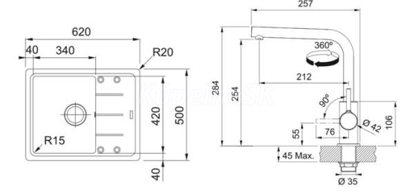 FRANKE SETG262O fragranitový drez 620x500 mm BFG 611-62 Onyx+batéria FS 3230.031 Chróm