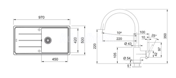 FRANKE SETG280KA fragranitový drez 970x500 mm BFG 611+batéria FC 6018.901 Kašmír