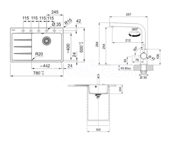 >>  KUCHYNE - Kuchynský tovar  >>  Kuchynské drezy  >>  AKCIOVÉ SETY (drez+batéria)  >>  FRANKE SETG250O fragranitový drez 780x500mm CNG 611-78 TL/7 Onyx+batéria FS 3230.031 Chróm