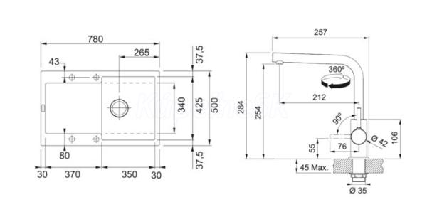 FRANKE SETG259ŠB fragranit drez 780x500 mm MRG 611 Šedá Bridlica+batéria FS 3230.031 Chróm