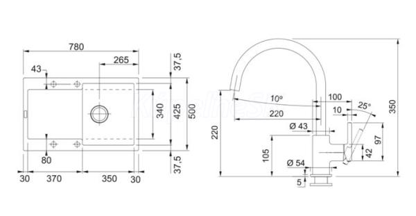 FRANKE SETG276ŠK fragranitový drez 780x500 mm MRG 611+batéria FC 6018.084 Šedý Kameň