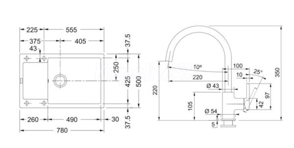 FRANKE SETG277O fragranitový drez 780x500 mm MRG 611-78 BB+batéria FC 6018.071 Onyx