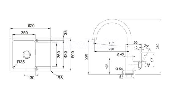 FRANKE SETT118Č tectonit drez 620x500 mm OID 611-62 Čierna+batéria FC 6018.901 Čierna mat