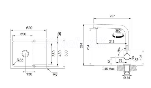 >>  KUCHYNE - Kuchynský tovar  >>  Kuchynské drezy  >>  AKCIOVÉ SETY (drez+batéria)  >>  FRANKE SETT110Š tectonit drez 620x500 mm OID 611-62 Sivá+batéria FS 3230.031 Chróm