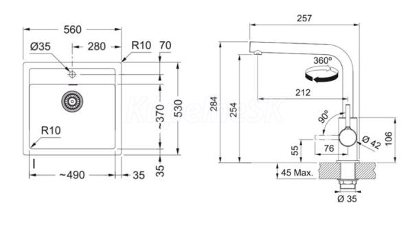 FRANKE SETT114BE tectonitový drez 560x530 mm SID 610 béžová+batéria FS 3230.031 Chróm
