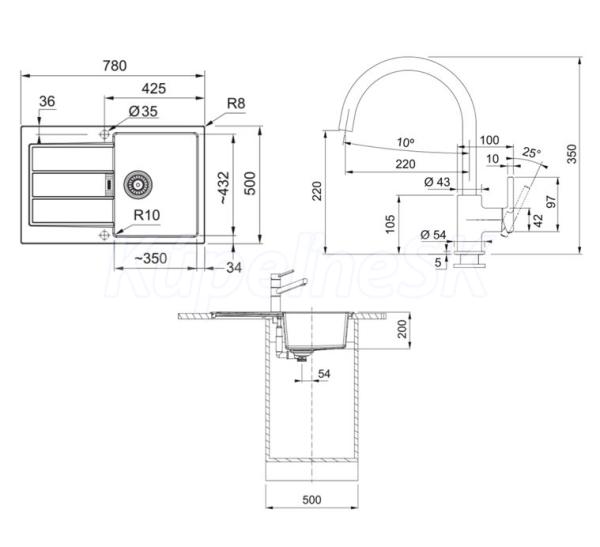 >>  KUCHYNE - Kuchynský tovar  >>  Kuchynské drezy  >>  AKCIOVÉ SETY (drez+batéria)  >>  FRANKE SETT123Š tectonitový drez 780x500 mm S2D 611-78 Šedá+batéria FC 6018.084 Šedý Kameň