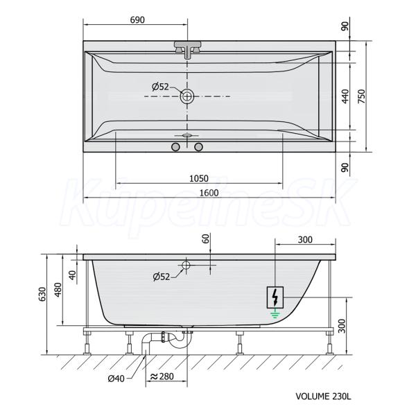 Polysan CLEO hydromasážna vaňa, 160x75x48cm, Attraction Hydro, Biela,krytka Chróm