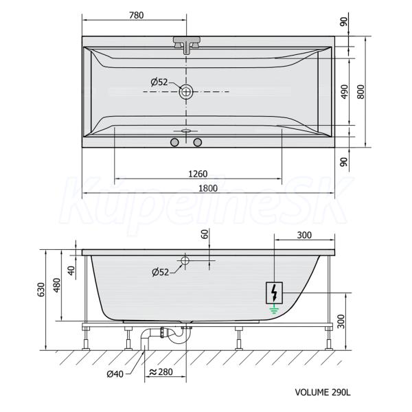 Polysan CLEO hydromasážna vaňa, 180x80x48cm, Active Hydro, Biela,krytka Chróm