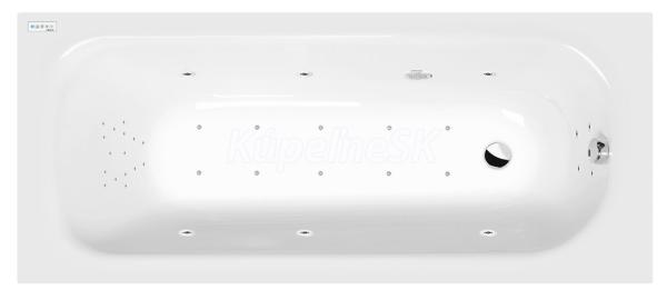 Polysan EBRO hydromasážna vaňa, 170x75x39cm, Highline Hydro-Air, Biela,krytka Chróm