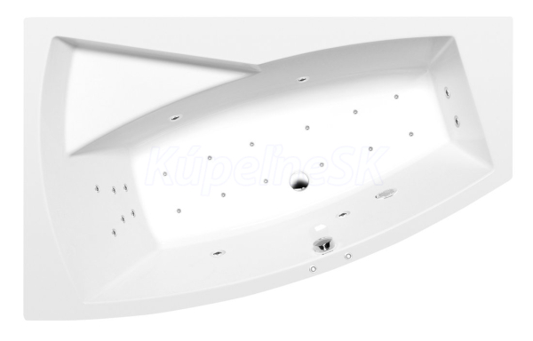 Polysan EVIA L hydromasážna vaňa, 160x100x47cm, Attraction Hydro-Air, Biela,krytka Chróm