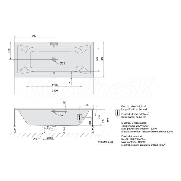 Polysan KRYSTA hydromasážna vaňa, 180x80x39cm, Active Hydro, Biela,krytka Chróm