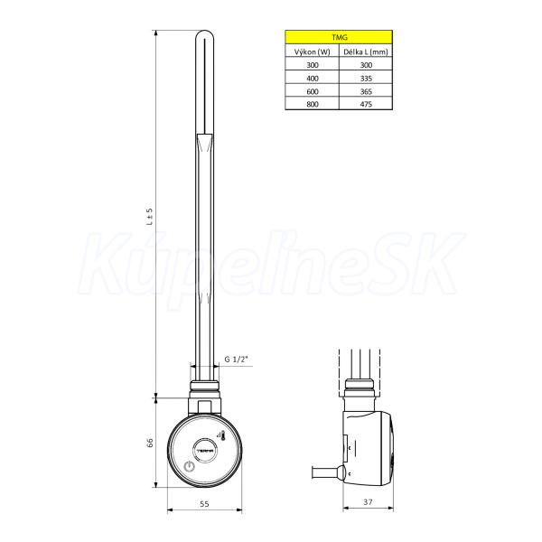 Sapho WICHER vykurovacia tyč s termostatom, 800 W, biela 600.206.4
