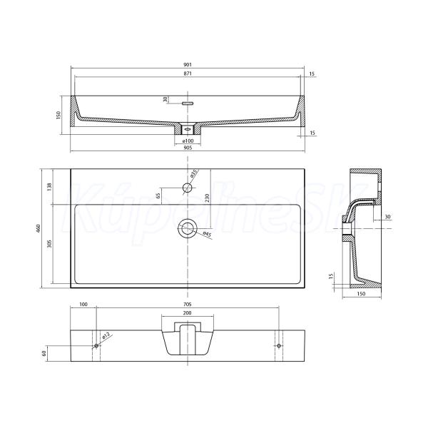 >>  Umývadlá  >>  Umývadlá liaty mramor  >>  Umývadlá do 90cm  >>  Sapho AQUATIC umývadlo, liaty mramor, 90x46cm, biela AT090