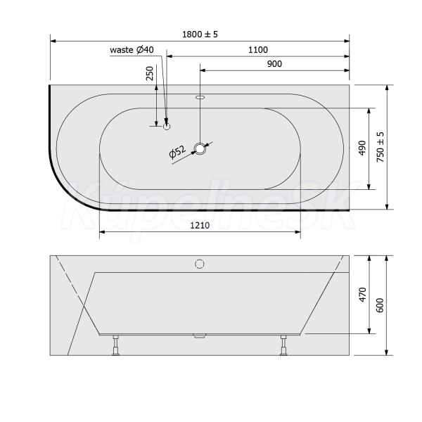 Polysan VIVA R MONOLITH asymetrická vaňa 180x75x60cm s integrovaným panelom biela/verde