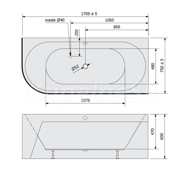 Polysan VIVA R MONOLITH asymetrická vaňa 170x75x60cm s integrovaným panelom biela/carina
