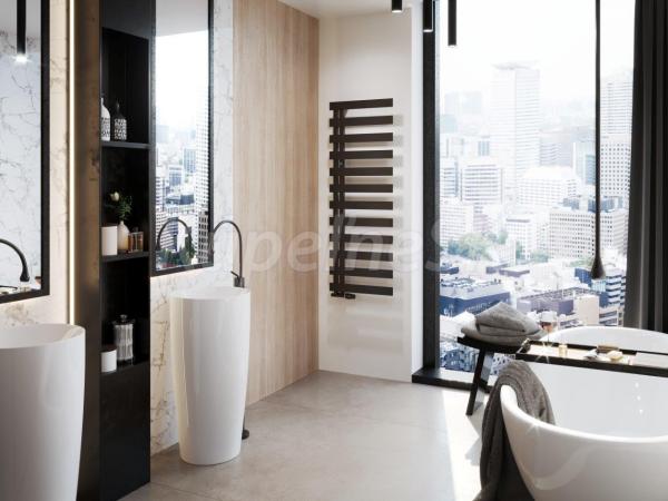 Radiátor do kúpeľne už dávno nie je nudný biely rebrík. To napokon ukazuje univerzálny ľavo/pravostranný radiátor EDINBURGH vo farbe C31 black mat (čierna matná) , elegantný a praktický radiátor . Vďaka " hrebeňovému " štýlu je sušenie a údržba radosťou. Rovnomerné usporiadanie plochých profilov ponúka radiátoru EDINBURGH možnosť uplatnenia v akejkoľvek kúpeľni. Vďaka svojej konštrukcii umožňuje jednoduché a pohodlné zavesenie uterákov zo strany na horizontálne tyče a tie rýchlo schnú. K dispozícii je ľavé aj pravé prevedenie pre teplovodnú , kombinovanú aj elektrickú prevádzku so stredovým pripojením. Rozmer horizontálnych profilov je 60x10 mm a vertikálnych profilov 30x30 mm . Odporúčané armatúry: Z7 Z4 Z4K
