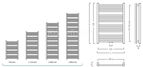 - 400 × 740 mm, výkon 312 W (vykurovacia tyč 300 W) - BOČNÉ PRIPOJENIE