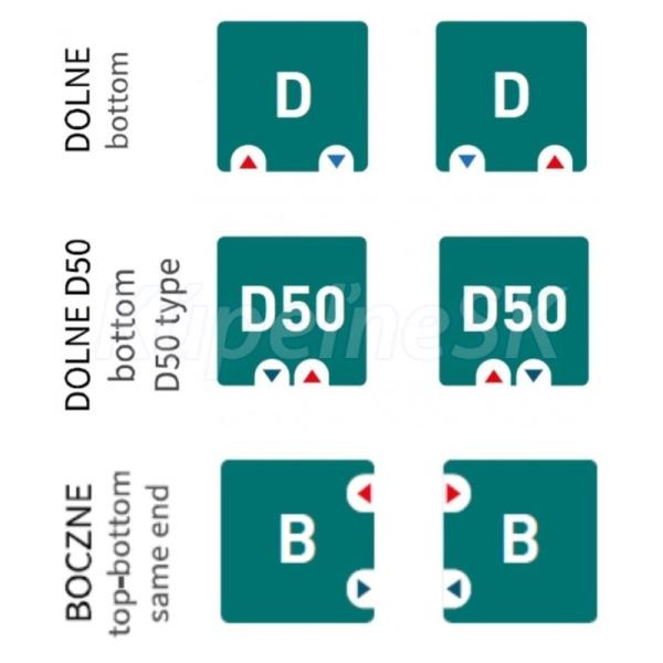 - Spodná: 770 mm, 970 mm, 1170 mm, 1370 mm, 1570 mm, 1770 mm (na spodných stranách radiátora)