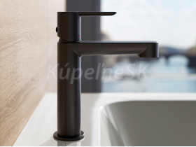 Umývadlová batéria Puri, bez výpusťe. V novom dizajne s jemnejšími tvarmi a odľahčeným vzhľadom. V čiernom matnom vyhotovení. Perlátor s funkciou FlexiFlow.