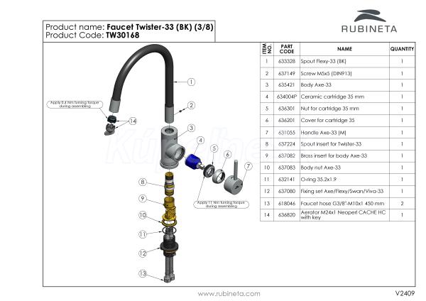 >>  Batérie vodovodné  >>  Drezové-Kuchynské batérie  >>  Rubineta TWISTER-33 drezová batéria s flexibilným ramenom Čierna OLBATW33BK