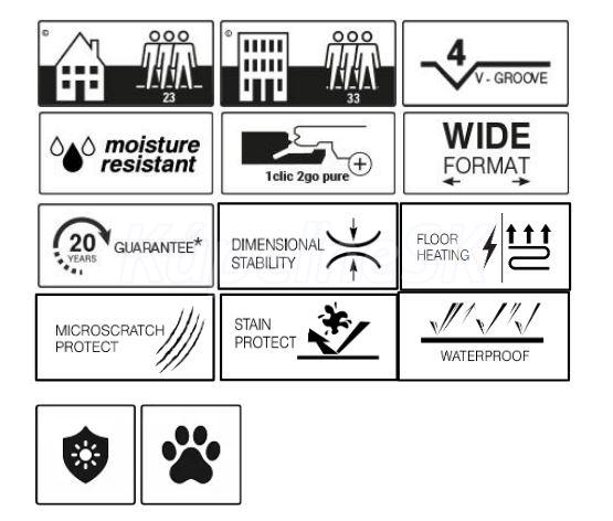 - AC5/33 (podlaha vhodná pre intenzívne zaťaženie v obytných aj v komerčných priestoroch)