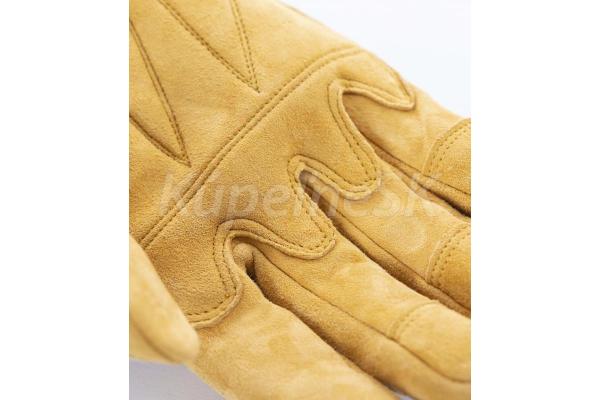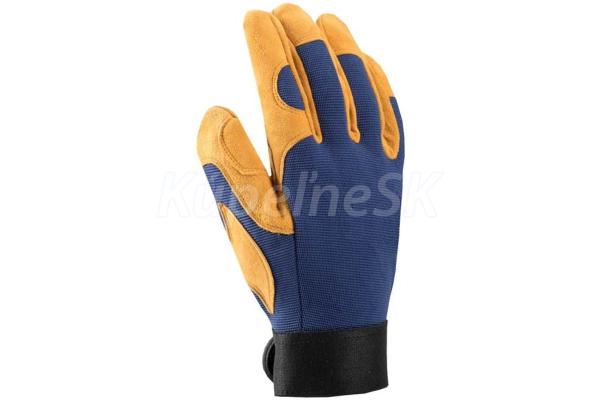 - Základný materiál, ktorý chráni dlaň a prsty, je kvalitná kozia koža. Tento materiál odoláva mechanickému namáhaniu, neprepúšťa vodu ani oleje a zároveň dostatočne tepelne izoluje. Do dlane rukavíc je všité polstrovanie, ktoré znižuje tvorbu pľuzgierov. V rukaviciach môžete dlhodobo manipulovať so strojmi alebo pracovnými nástrojmi bez bolesti alebo nepríjemných pocitov na citlivej pokožke.
