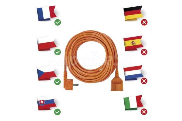 predlžovací kábel počet zásuviek: 1 x 2P + EP napätie/prúd: 250 V~/16 A max. Vodič: H05VV-F3G 1,5 mm clony pre deti: áno typ izolácie: PVC materiál zásuvky a zástrčky: plast max. zaťaženie: 3680 W farba: oranžová